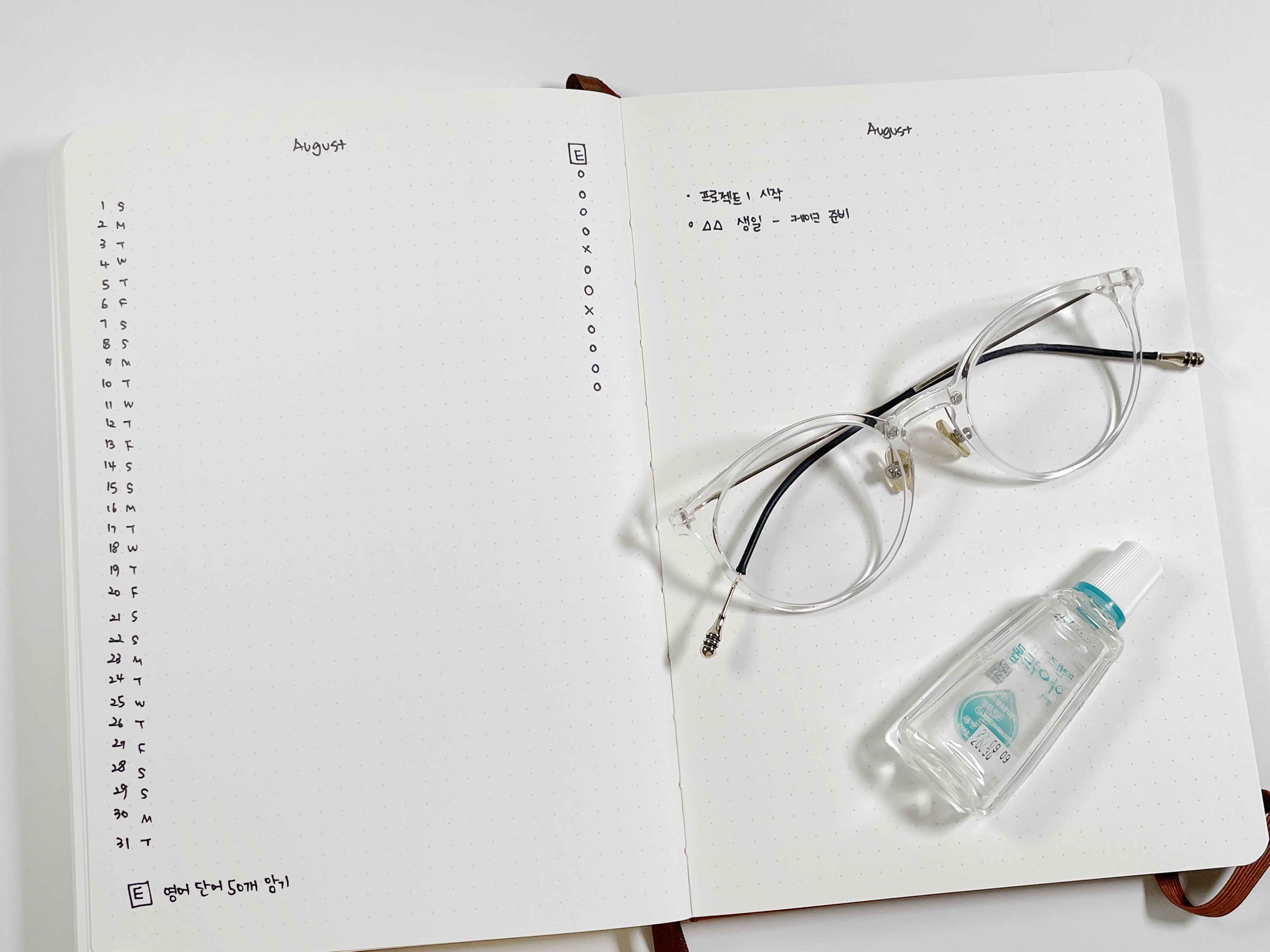 이 또한 말 그대로 한 달, 그리고 매일의 기록을 불렛기호들을 이용해 적어주면 된다.