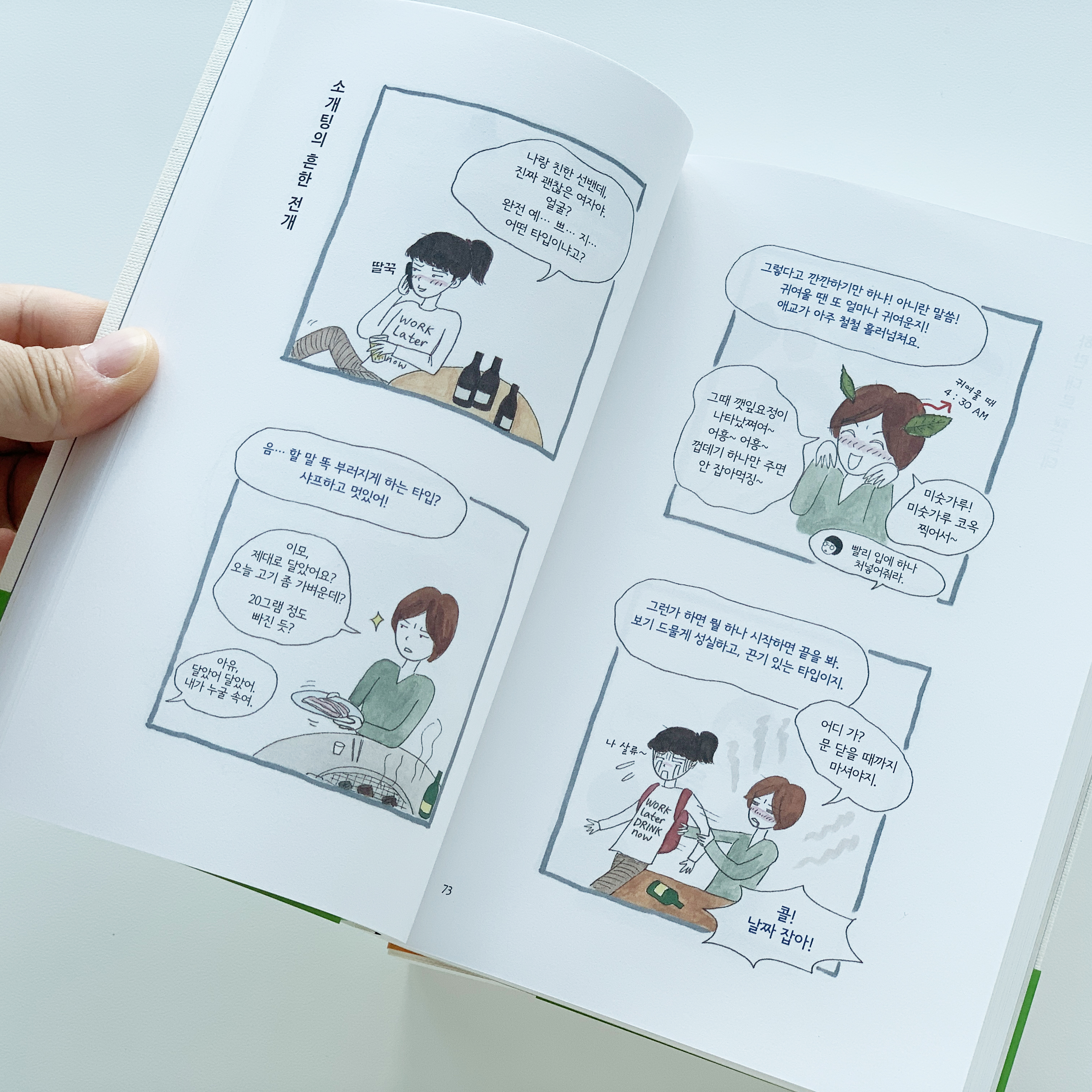 얼마 전에 드라마로 방영도 시작했는데, 첫 화를 보고 아주 깔깔 웃다 못해 뒤집어졌다. 만화 속에서 내가 상상하던 캐릭터와 드라마에서 재해석한 캐릭터의 차이가 크기도 크고, 술 마시고 노는 친구들의 보니 '아우, 이거 너무 실제 얘긴데?' 싶어 눈을 질끔 감으면서도 깔깔 웃는다. 술을 마시지 않아도 유쾌하고 얼큰한 화면에 나도 모르게 금세 취하는 기분이 든다.