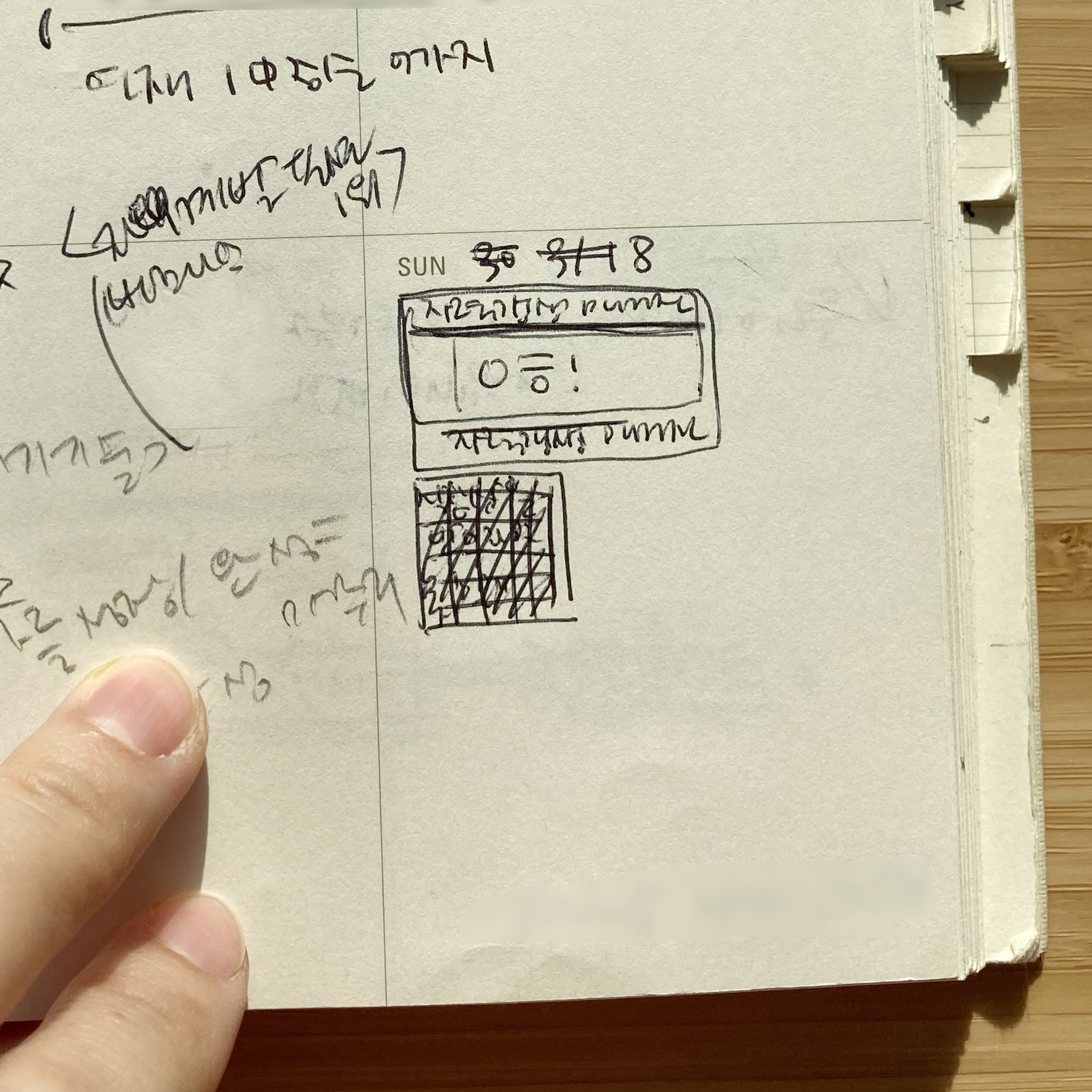 - 아이디어 뱅크. 늘 사진으로 기록한다. 아이디어가 많아 스스로 접은 아이디어가 무궁무진하다.(언젠가 공개를...)