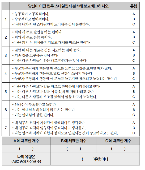 메이어 프리드먼(Meyer Friedman)과 레이 로젠만(Ray Rosenman)은 일을 처리하는 방식에 따라 받는 스트레스를 세 종류로 분류했다. 다음은 이들이 분류한 일을 대하는 성격의 세 유형이다. 당신이 어디에 속하는지 체크해 보자.
