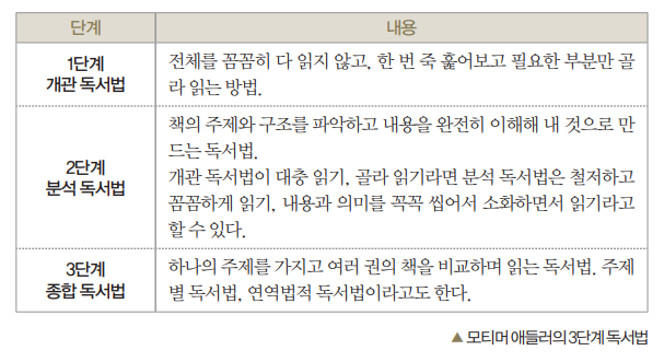 모티머 애들러는 독서 수준에 따라 3단계 독서법을 제안했다.