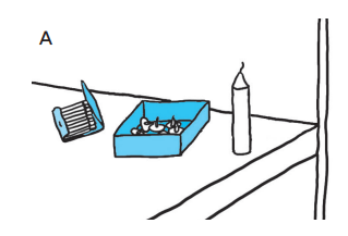 학생들에게 그림 A에서 보는 것처럼 성냥 한 갑과 압정 한 상자, 그리고 양초 하나를 나눠준 다음