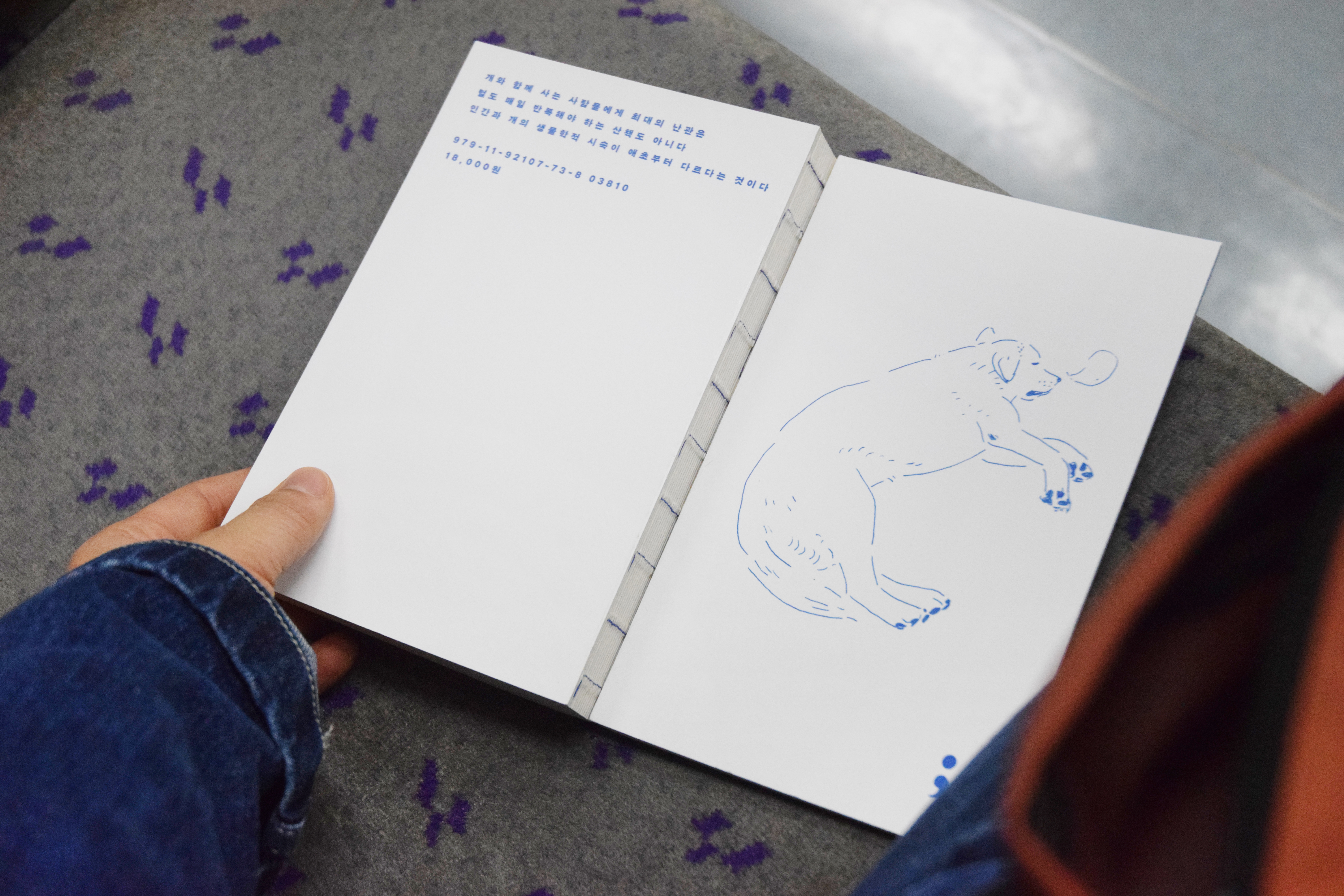 주말은 금방이면서, 월요일의 시간은 아주 천천히 흐른다. 그래도 잊지 않고 무릎에 펼쳐 읽기 좋은 책을 챙겼다. 보통 책을 편하게 보려고 책등 쪽을 쫙쫙 누르면 꼭 모양이 손상되었는데, 실로 꿰매어 제본하는 사철 방식은 종이 결도 잘 보여 예뻐서 좋고, 페이지가 일자로 잘 펴져서 좋다.