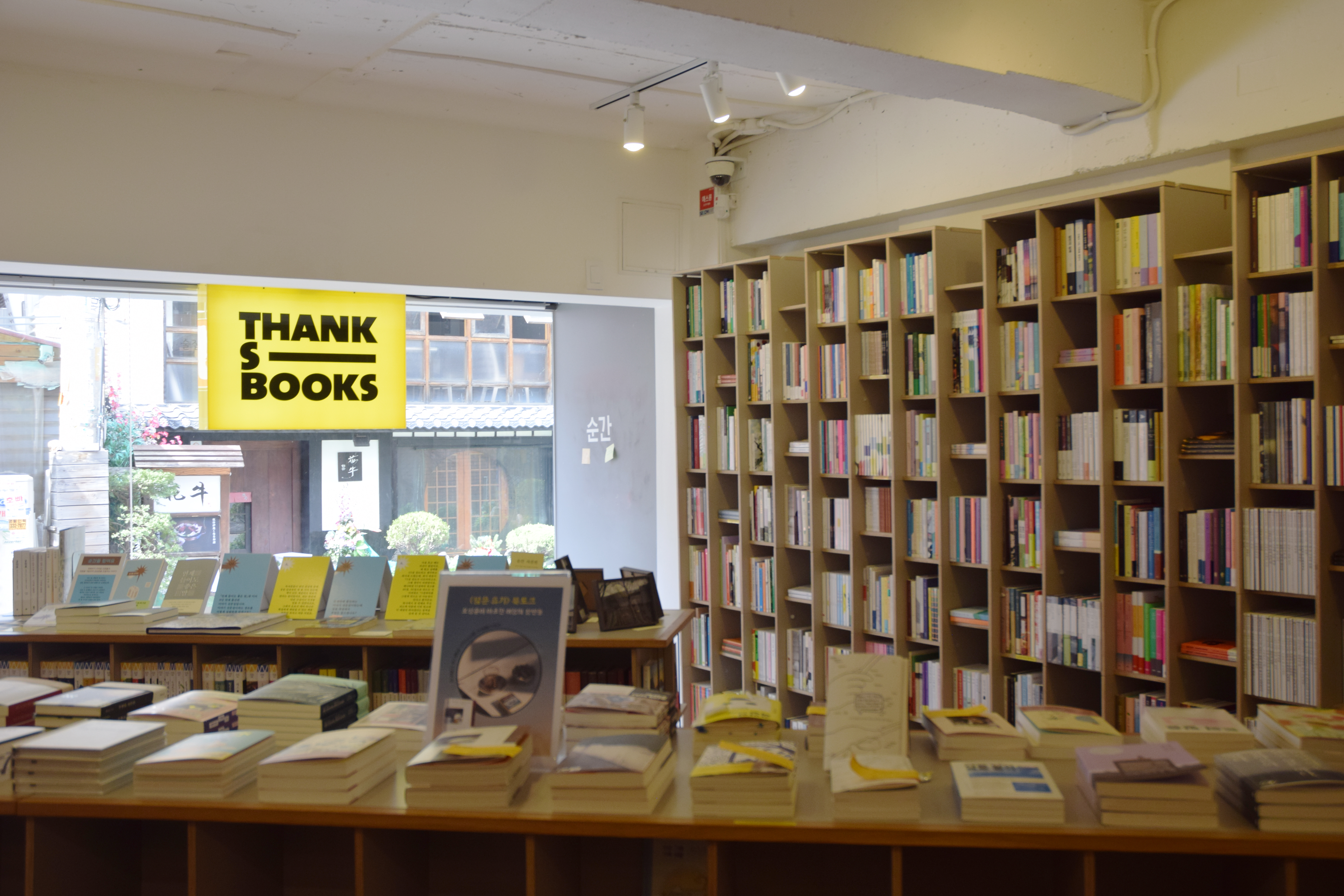 '좋아하는 책을 읽어가는 기쁨도 크지만, 좋아하는 책을 편안한 공간에서 고르는 기쁨도 큽니다.'라는 땡스북스의 문장을 보고 이 책방을 더 좋아하게 되었다. 땡스북스를 방문할 때면 '좋아하는 곳에서 책을 고르는 기쁨'을 알게 되기 때문. 때마다 바뀌는 전시를 보는 재미도, 책방 지기님들이 남겨주신 책 코멘트를 보는 재미도 쏠쏠하다. 정신없이 집중해서 구경하다 보면 나도 모르게 네다섯 권을 덥석 집어 들게 된달까.💌