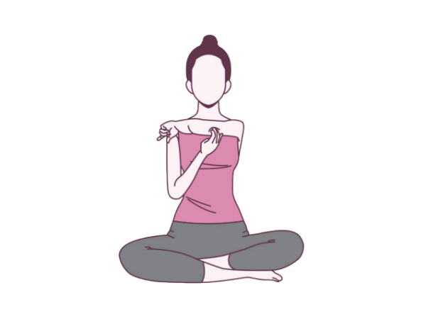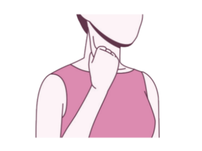 ② 엄지와 검지를 이용해 사선 모양의 흉쇄유돌근을 두껍게 잡고 대각선 아래로 잡아 가볍게 당겨준다.