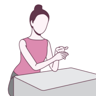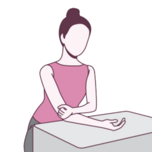 ① 통증이 있는 손목 쪽의 팔꿈치를 책상에 대고 손바닥은 천장을 향하게 한다.
