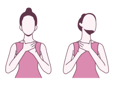 ① 의자에 앉아서 귀 뒤에서 붙어 쇄골까지 내려오는 목 앞쪽 근육을 찾는다.
