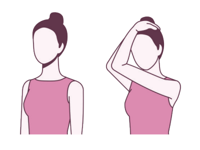 ① 스트레칭하고자 하는 쪽의 쇄골을 눌러서 잡고 머리를 사선으로 돌린 후 뒤로 젖혀준다.