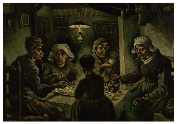 언젠가는 〈감자 먹는 사람들〉이 진정한 농촌 그림이라는 평가를 받을 것이다. 감상적이고 나약하게 보이는 농부 그림을 좋아하는 사람은 다른 대상을 찾겠지. 그러나 길게 봤을 때는 농부를 전통적인 방식으로 온화하게 그리는 것보다 그들 특유의 거친 속성을 살려내는 것이 더 좋은 결과를 낳을 것이다. 여기저기 기운 흔적이 있고 먼지로 뒤덮인 푸른색 치마와 상의를 입은 시골 처녀는 날씨와 바람, 태양이 남긴 기묘한 그늘 아래에 있을 때 숙녀보다 더 멋지게 보인다고 생각한다. 그녀가 숙녀들이 입는 옷을 걸친다면 특유의 개성은 사라져버릴 것이다. 마찬가지로 농부는 일요일에 교회에 가려고 신사복을 차려입었을 때보다 작업복을 입고 밭에 나가 있을 때가 더 좋아 보인다.