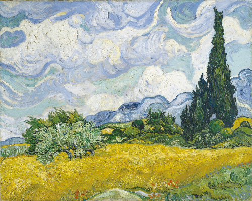 〈사이프러스 나무가 보이는 밀밭〉 1889년 6월 말, 캔버스에 유채, 73×93.5cm. 나는 항상 내가 할 줄 모르는 것을 시도하네. 배우기 위해서지.