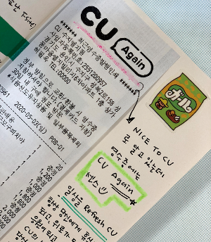 어느 날 무심코 받은 CU 편의점의 영수증에 ‘씨유 어게인CU Again’이라고 적혀 있다. “아, 그렇지. 영수증 받고 나가는 고객에게 해야 하는 말은 ‘나이스 투 씨유’가 아니라 ‘씨유 어게인’이네!” 영수증 카피를 관찰해 발견한 힌트를 따라 그 브랜드에 대해 더 찾아보고, 다른 편의점 브랜드의 속뜻을 알아보고, 자신이 진행했던 많은 서비스, 프로모션, 메시지의 문맥도 생각해본다면 어떨까.