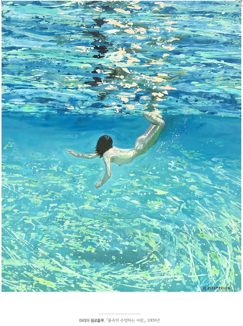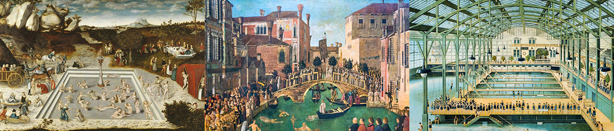 왼쪽부터 ©루카스 크라나흐 '젊음의 샘', ©젠틸레 벨리니'산로렌소 다리 근처에서 일어난 진실한 십자가의 전설', ©작자미상 '수트로배스의 내부' 인류는 언제나 수영을 했다. 역사에 따라 그 모습은 달라졌지만 물을 가르며 헤엄치는 일을 멈춘 적은 없다. 고된 노동에 시달린 후에도 수영을 하며 온갖 고통과 시름에서 벗어났고 물속에 머무르며 긴장과 피로를 해소했다. 또, 방전된 에너지를 회복하며 재충전의 시간을 가졌다. 수영은 육체적으로나 정서적으로나 즐거움을 주었고, 각박한 생활에 여유를 주며 생을 발전적으로 이끌었다. 수영을 함으로써 인간은 앞으로 나아갈 수 있었다. 여기에서 모티브를 얻어 보기만 해도 시원해지는 수영그림을 통해 마음껏 휴식하는 법을 배워볼 수 있다.